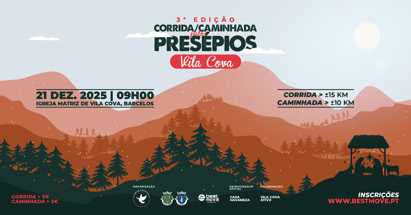 A 3ª edição da Corrida/Caminhada pelos Presépios de Vila Cova convida-te a unir desporto, tradição e solidariedade numa manhã festiva.
