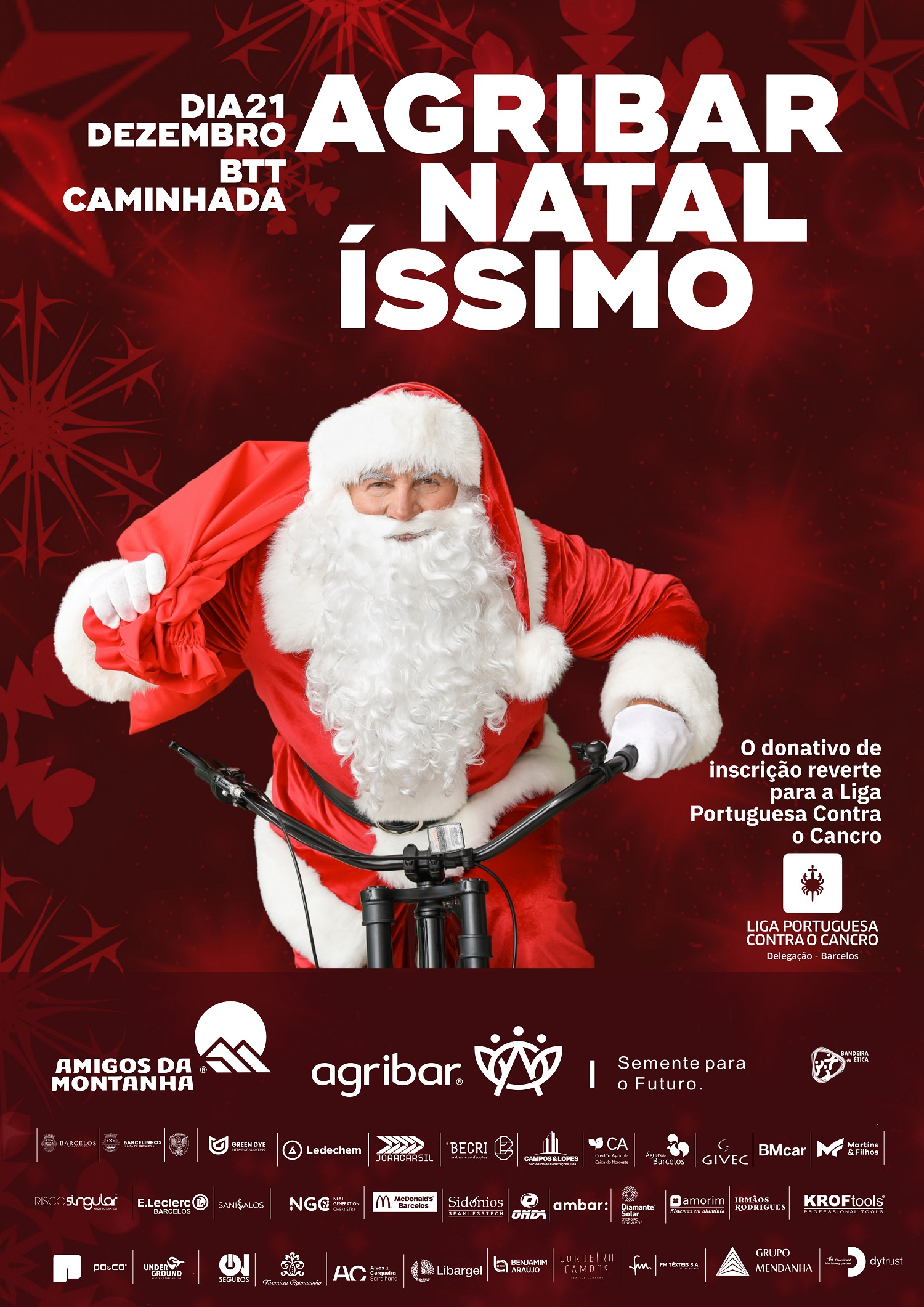 Barcelos recebe no dia 21 de dezembro mais uma edição do Agribar Natalíssimo, um evento solidário que une desporto, espírito natalício e compromisso social. A iniciativa, que conta com o apoio da Agribar – Cooperativa Agrícola de Barcelos, tem como objetivo angariar fundos para a Liga Portuguesa Contra o Cancro – Delegação de Barcelos. O evento inclui uma caminhada e um passeio de BTT, com ponto de partida na Av. da Liberdade, pelas 10h. A participação é aberta a todos, mediante donativo livre, sendo que a totalidade das contribuições será revertida para o apoio a doentes oncológicos. Uma das marcas da iniciativa é o convite à criatividade: os participantes são desafiados a vestir-se com indumentária natalícia, promovendo o bom humor e o espírito festivo da época. No final das atividades, será servido um lanche convívio com sabores típicos de Natal.