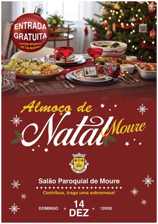 Almoço Natal, domingo dia 14 dezembro, 12:30 horas, Salão Paroquial de Moure