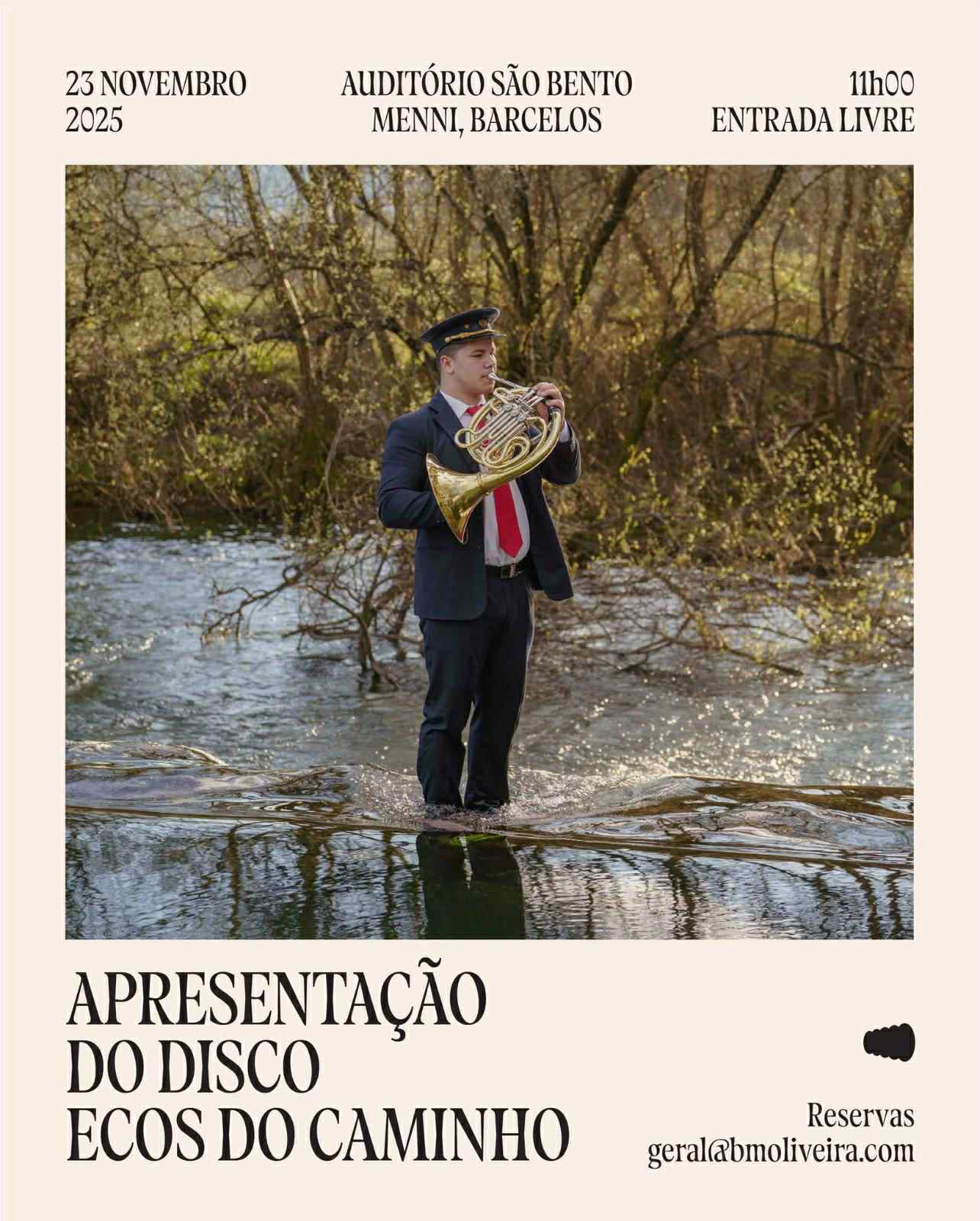 A Banda Musical de Oliveira (BMO), de Barcelos, vai editar um disco com seis obras originais inspiradas no Caminho Português de Santiago, no âmbito do projeto Ecos do Caminho. A apresentação de “Ecos do Caminho – uma jornada musical pelo Caminho de Santiago” acontece em 23 de novembro, no Auditório São Bento Menni, em Barcelos, pelas 11h00. Ecos do Caminho é um projeto que juntou a BMO a seis compositores de renome nacional e internacional – Andrés Alvarez, Anne Victorino d’Almeida, Daniel Amaro, Francisco Ribeiro, Nuno Lobo e Thierry Deleruyelle. Inspirada no Caminho Português de Santiago, a iniciativa consistiu na criação de seis composições originais para Banda que foram interpretadas e gravadas num disco. O projeto contou com a direção artística do maestro Alfredo Macedo.