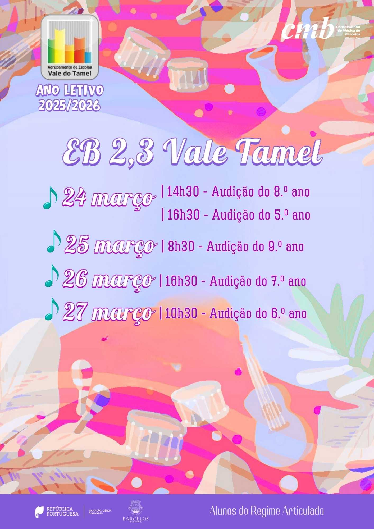 Integradas no Plano Anual de Atividades 2025/2026 do Conservatório de Música de Barcelos, estas audições refletem o compromisso da instituição com a promoção da formação artística, incentivando o gosto pela música, o espírito de superação e a valorização da prática instrumental. 🎶