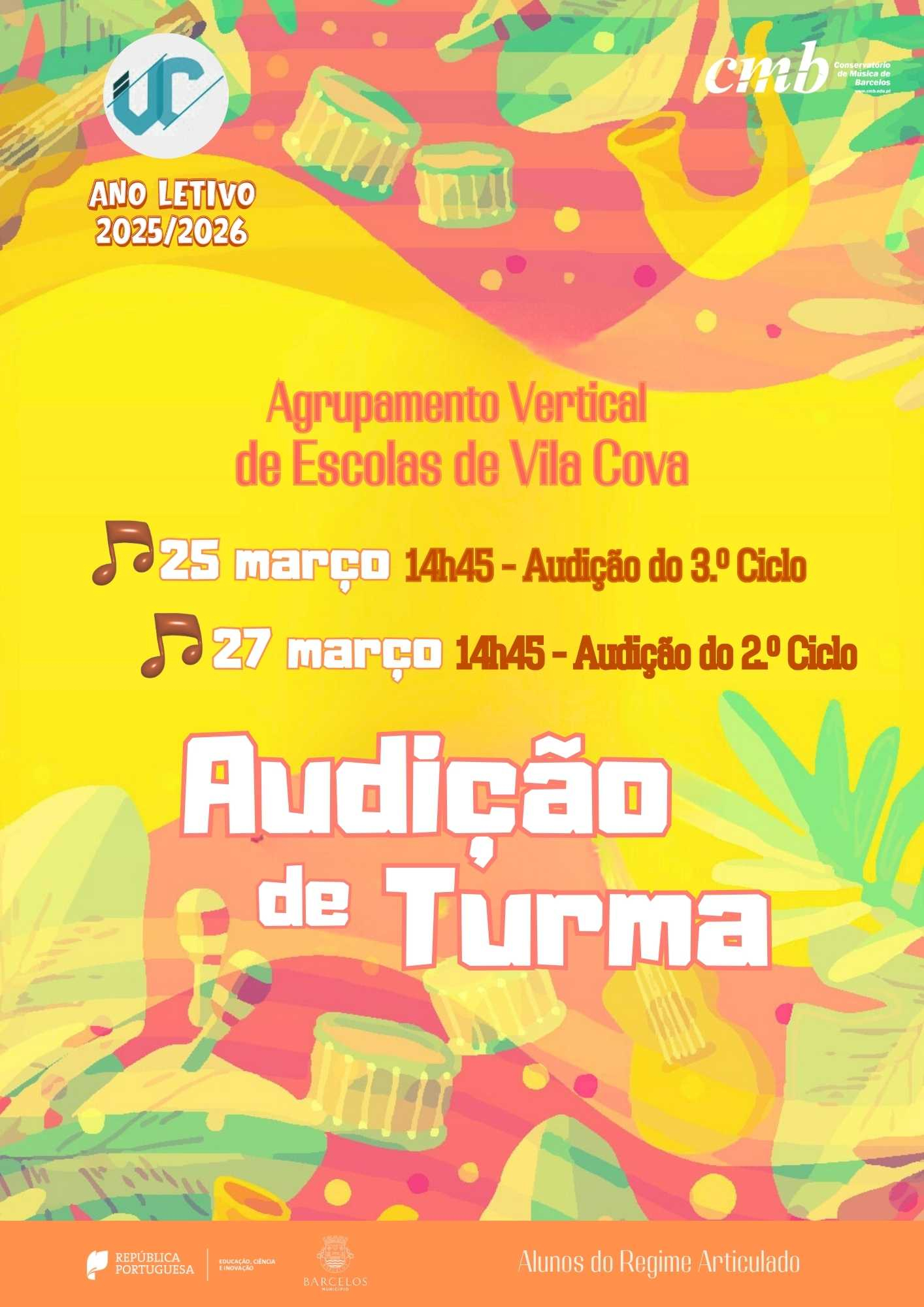 Integradas no Plano Anual de Atividades 2025/2026 do Conservatório de Música de Barcelos, estas audições refletem o compromisso da instituição com a promoção da formação artística, incentivando o gosto pela música, o espírito de superação e a valorização da prática instrumental. 🎶