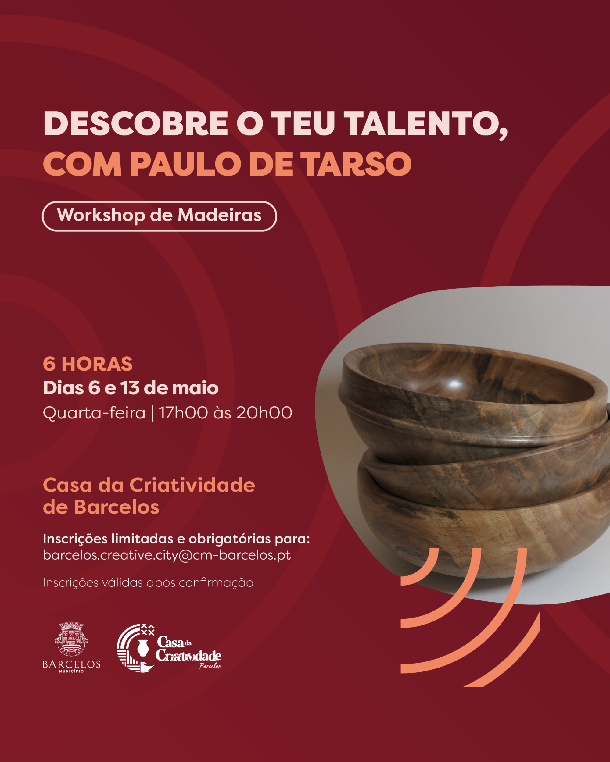 Todos os interessados devem fazer a sua inscrição através do e-mail: barcelos.creative.city@cm-barcelos.pt, indicando obrigatoriamente o nome completo, contacto telefónico e e-mail.