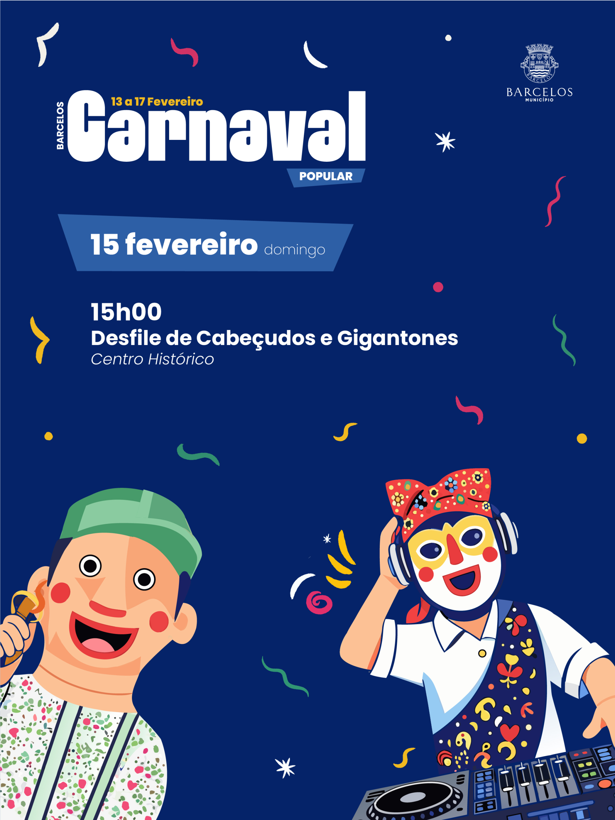 O Desfile de Carnaval de Cabeçudos e Gigantones integra o programa do Carnaval Popular de Barcelos e realiza-se no dia 15 de fevereiro, a partir das 15h00. Este momento, dedicado à tradição, destaca uma das expressões mais emblemáticas do Carnaval barcelense, prometendo encher o Centro Histórico de sorrisos e aplausos.
