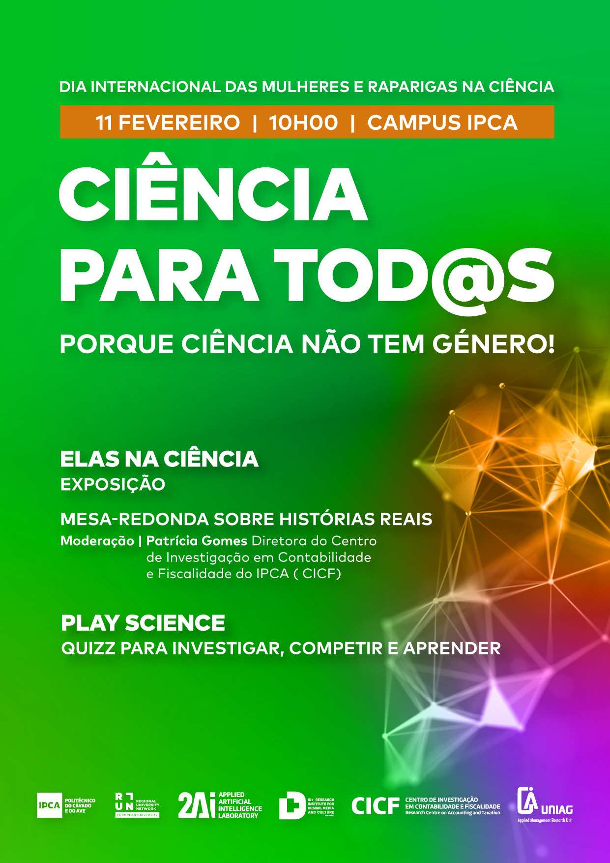 Dirigido a estudantes do ensino secundário e do ensino superior, o evento pretende inspirar raparigas e rapazes a seguirem a ciência como carreira e fomentar o debate sobre a participação das mulheres e raparigas na investigação científica. O ponto central será a mesa-redonda “Elas na Ciência”, com investigadoras dos centros de investigação do IPCA – 2Ai, ID+ e CICF, moderada por Patrícia Gomes, Diretora do CICF, que partilhará histórias reais, desafios e oportunidades no mundo científico.