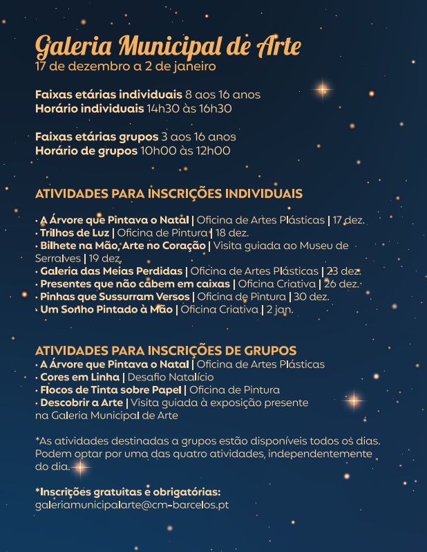 Galeria Municipal de Arte: galeriamunicipalarte@cm-barcelos.pt