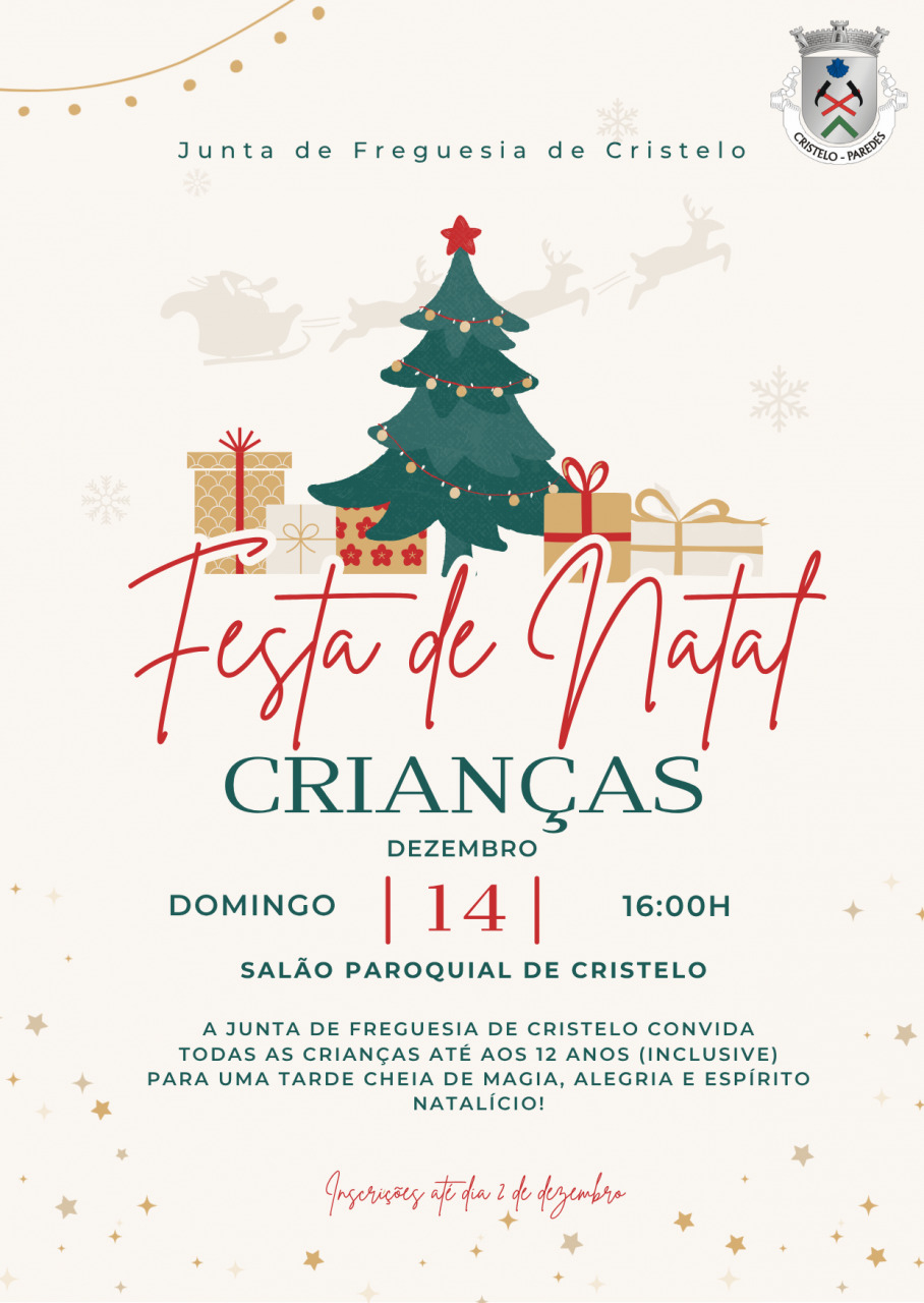 A Junta de Freguesia de Cristelo convida todas as crianças até aos 12 anos, para a festa de natal.