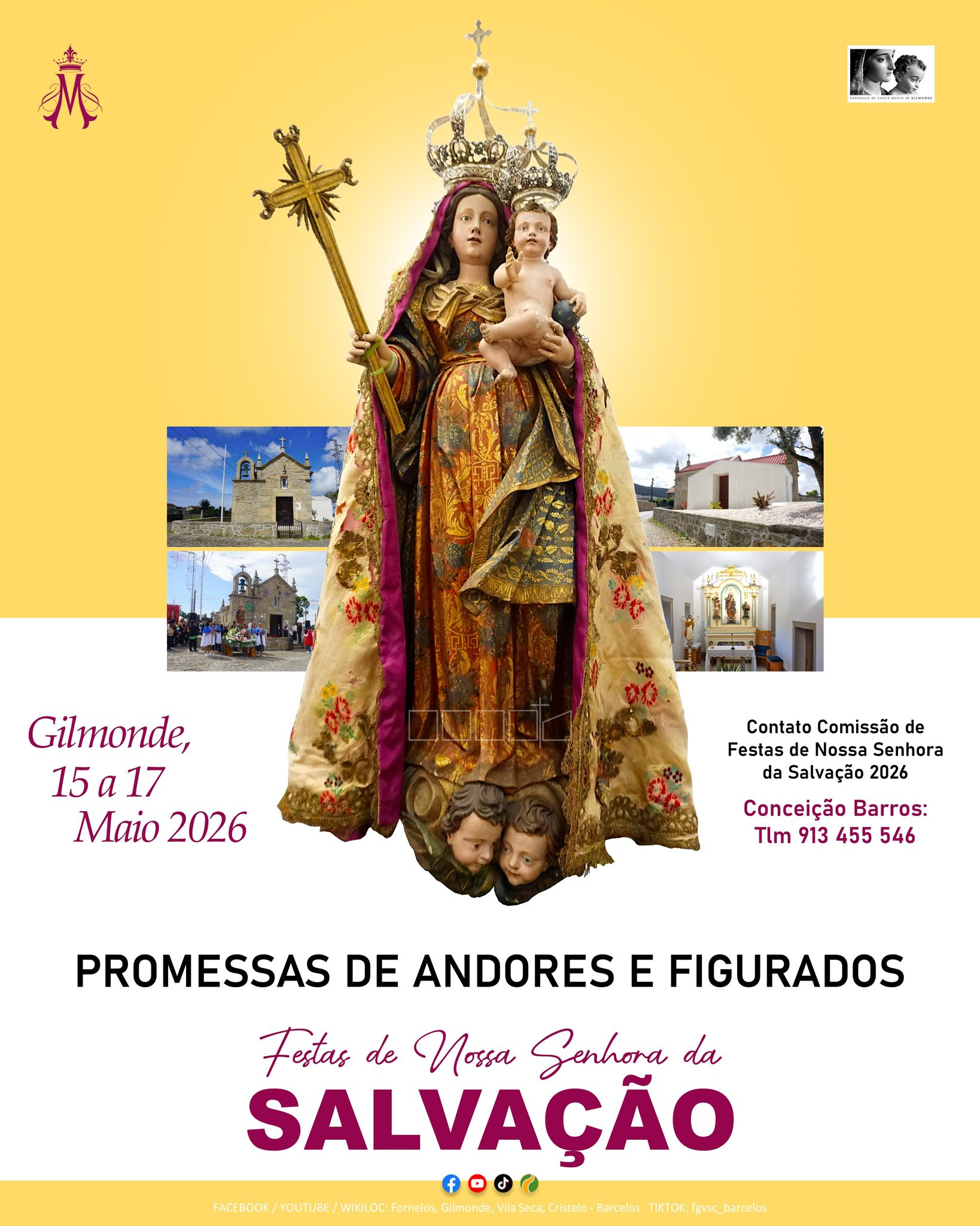 A Comissão de Festas em Honra de Nossa Senhora da Salvação está prestes a anunciar o programa religioso e festivo destas festas com grande tradição em Gilmonde, com Procissão de Velas, Eucaristia Campal, Procissão Solene com vários andores e figurados, e presença de artistas e grupos musicais. Aos interessados para promessas de andores e também para figurados, podem contactar Conceição Barros, da comissão de festas em honra de Nossa Senhora da Salvação pelo tlm 913 455 546.