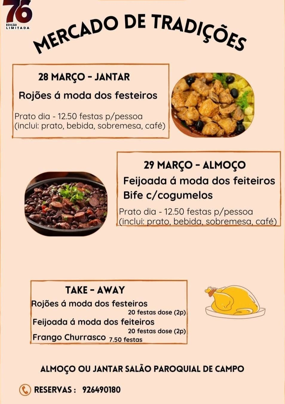 👉 Almoço ou jantar no salão paroquial da freguesia.