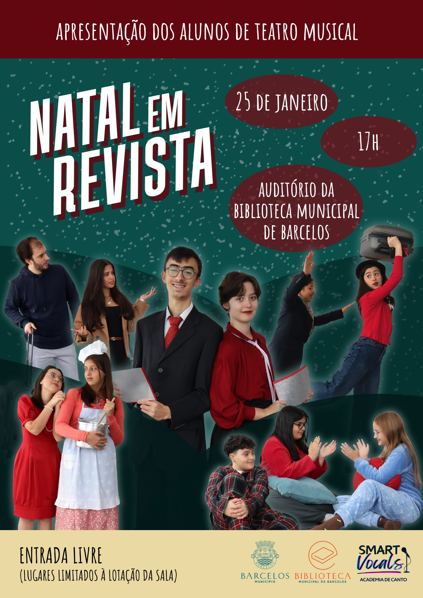 No dia 25 de janeiro, às 17h00, no Auditório da Biblioteca Municipal de Barcelos, decorre o musical “Natal em Revista”, apresentado pela Academia SmartVocals.