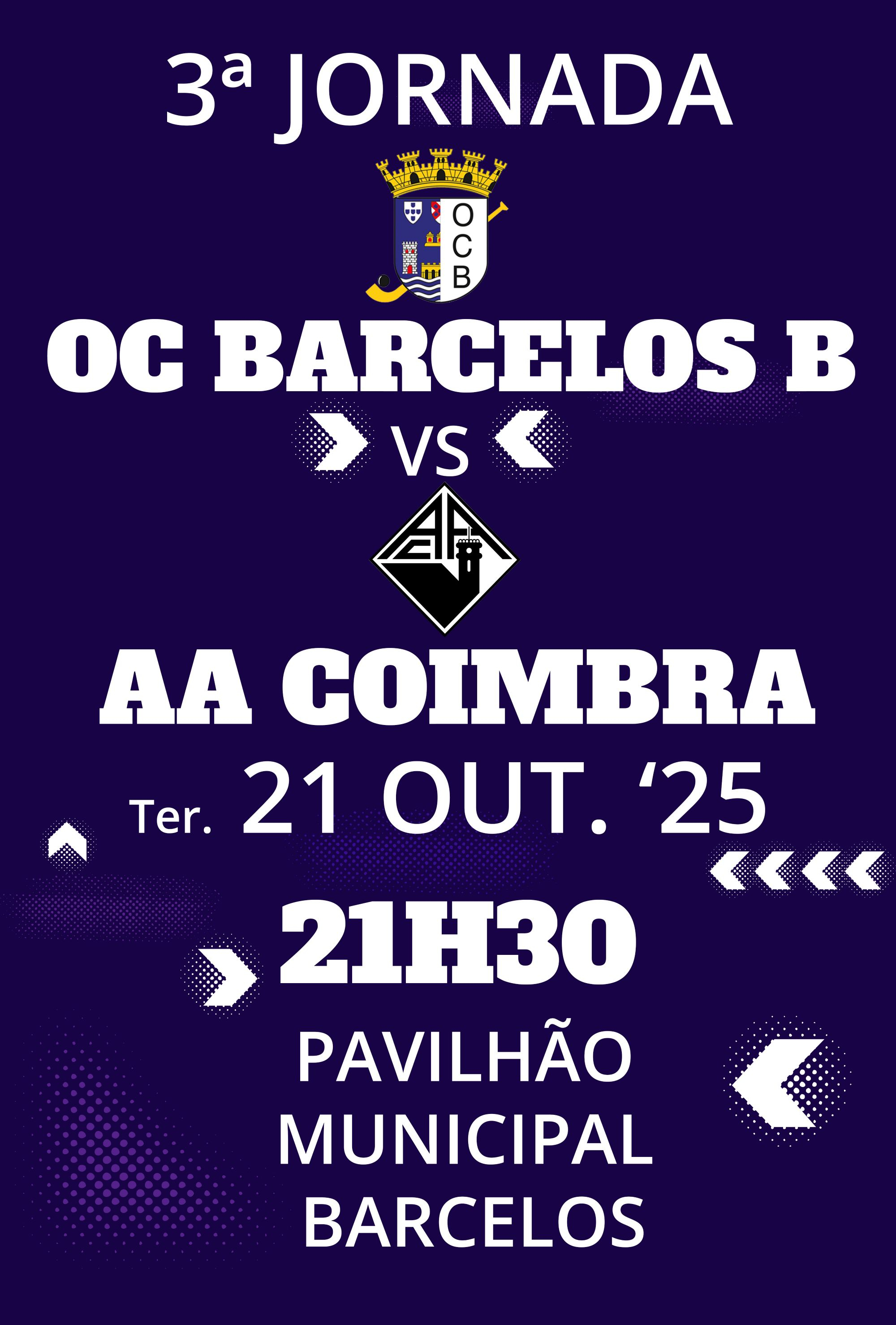 No dia 21 de outubro, pelas 21h30, venha assistir ao jogo OC BARCELOS B x AA COIMBRA.