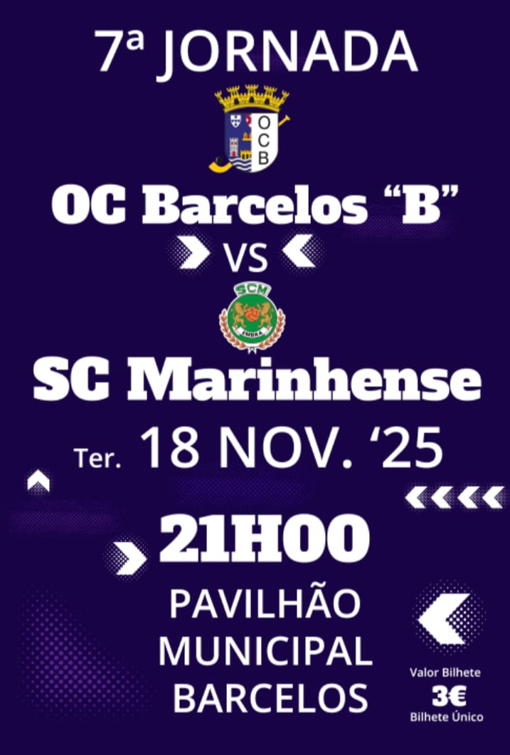 Dia 18 de novembro, pelas 21h00, venha assistir ao jogo OC BARCELOS "B" x SC MARINHENSE.