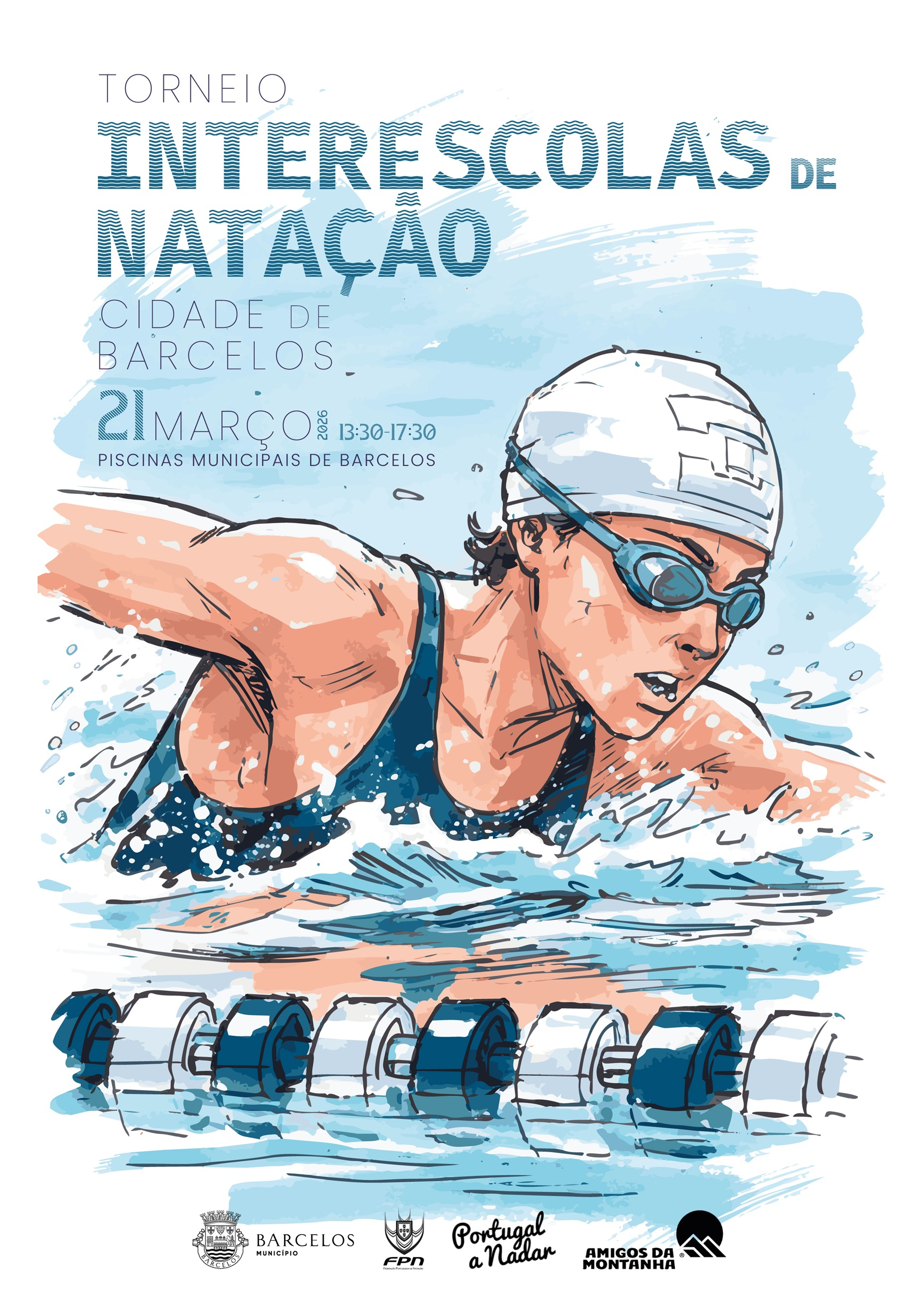 A Escola de Atividades Aquáticas do Município de Barcelos promove o "Torneio Cidade de Barcelos - Interescolas de Natação", no dia 21 de março de 2026, nas piscinas municipais.