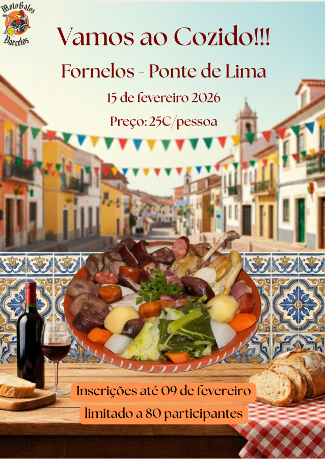 O cozido à portuguesa é muito mais do que um prato típico: é uma verdadeira celebração da nossa tradição. Esta saída do clube é um momento de convívio, partilha e boa disposição, onde os sabores fortes e autênticos se unem todos à mesa. Entre conversas animadas e pratos bem servidos, mantemos viva uma tradição que faz parte da nossa identidade e reforça o espírito de união do clube. Daremos início ao passeio em direção ao Cozido, com encontro na sede às 9:30h, passando pelo Motoclube Os Mouros (Vitorino de Piães) e Vila de Ponte de Lima.